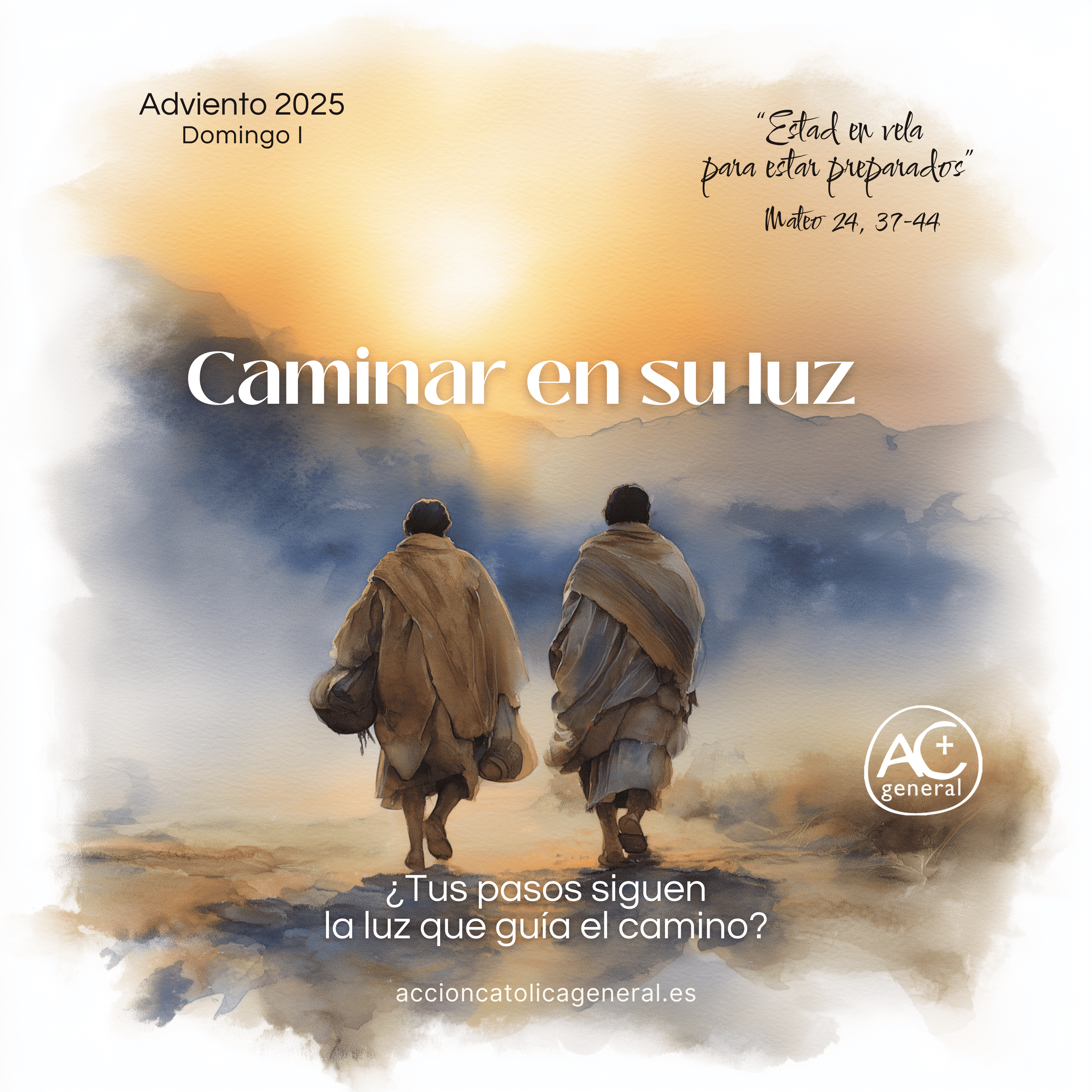Las composiciones parten de una ilustración de atmósfera suave y envolvente, con un tratamiento pictórico que recuerda a la acuarela digital. Las figuras aparecen integradas en paisajes abiertos, con una iluminación cálida que guía la mirada y centra la escena. No se trata de ilustraciones narrativas detalladas, sino de imágenes que sugieren, que crean clima y acompañan la lectura del Evangelio sin sustituirla.