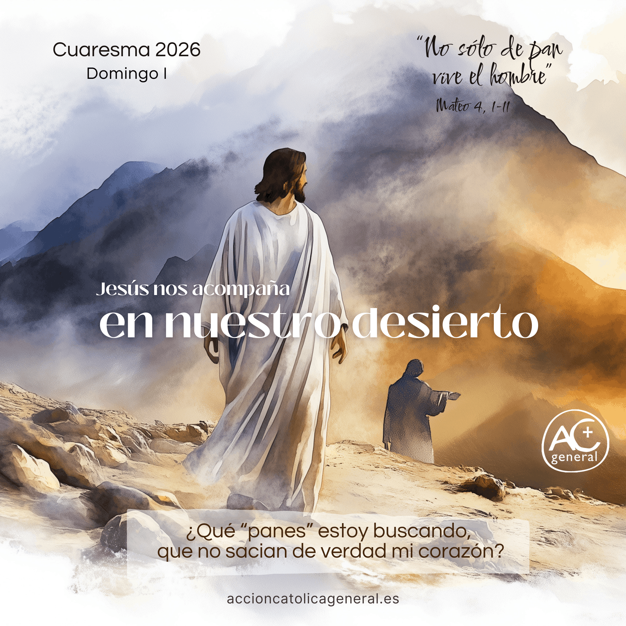 La serie de imágenes desarrollada para la Cuaresma de 2026 para Acción Católica General se construye sobre una idea central que articula todo el conjunto: Jesús nos acompaña. A partir de este eje, el autor ha diseñado una propuesta visual coherente que, en continuidad con trabajos de años anteriores, busca facilitar la reflexión personal a través de un lenguaje gráfico claro y reconocible. Cada imagen integra una composición de fondo, una cita del Evangelio, una frase síntesis y una pregunta orientada a la interioridad.
