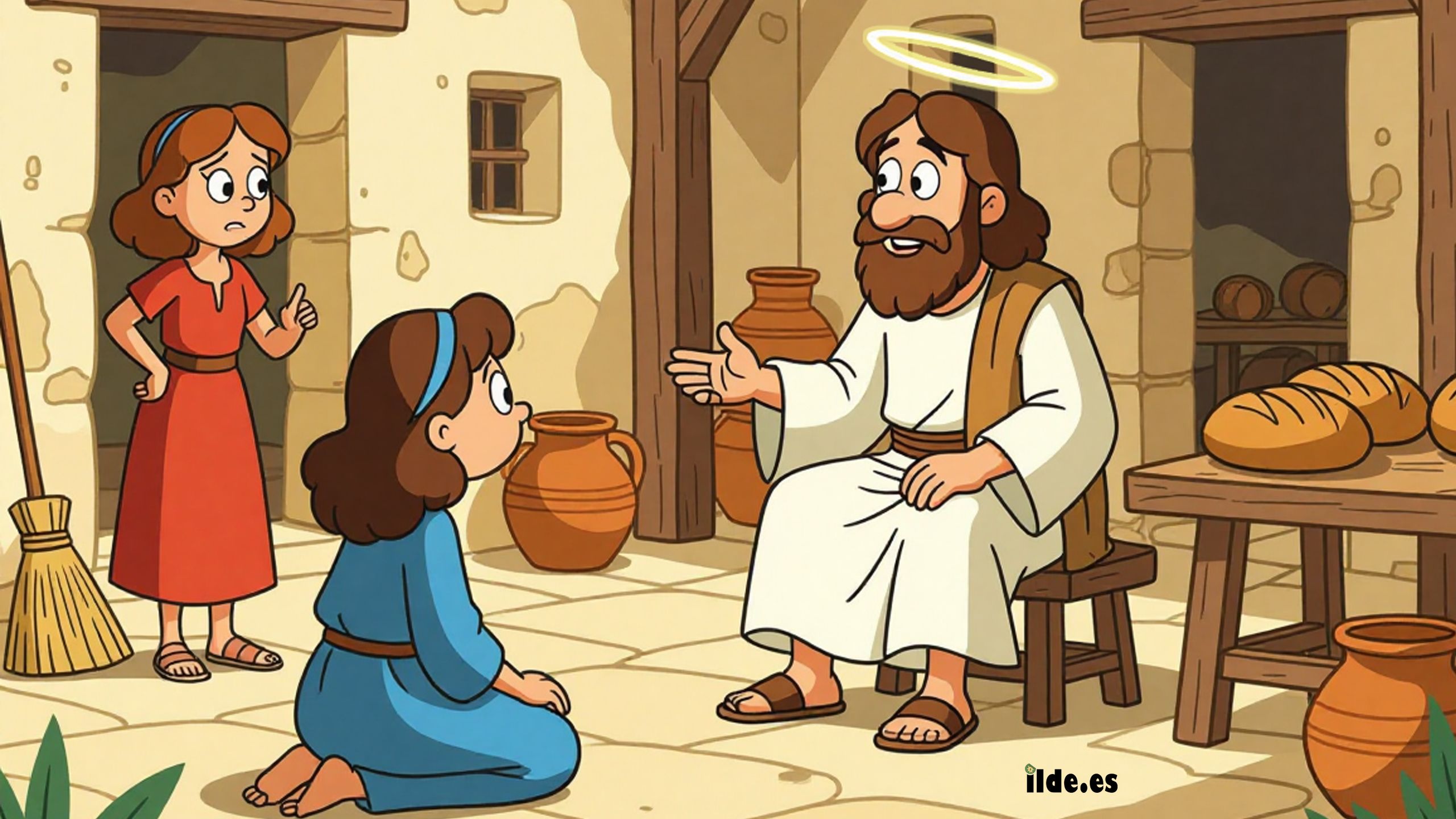 Jesús llegó a un pueblo y fue a la casa de dos hermanas, Marta y María.