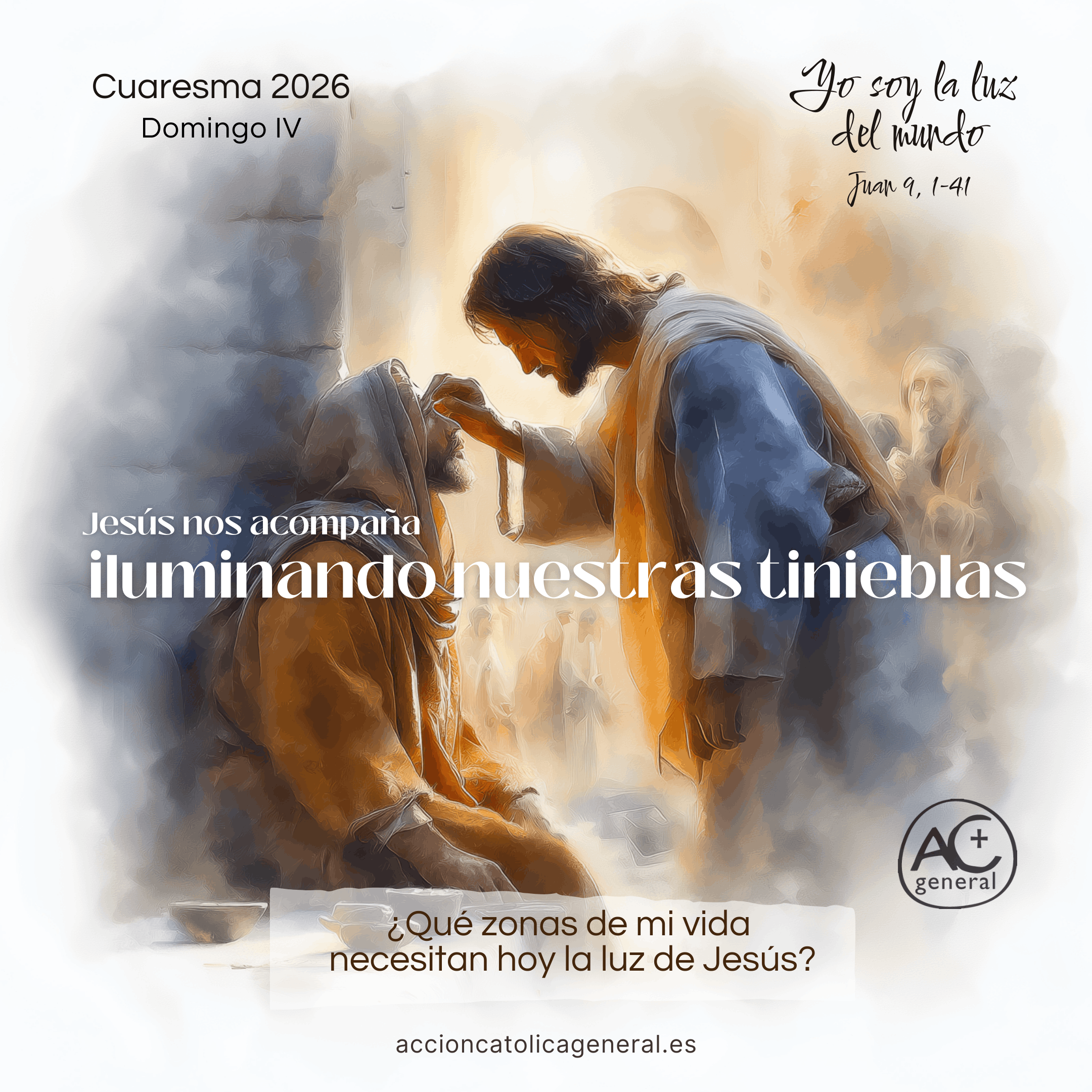 La serie de imágenes desarrollada para la Cuaresma de 2026 para Acción Católica General se construye sobre una idea central que articula todo el conjunto: Jesús nos acompaña. A partir de este eje, el autor ha diseñado una propuesta visual coherente que, en continuidad con trabajos de años anteriores, busca facilitar la reflexión personal a través de un lenguaje gráfico claro y reconocible. Cada imagen integra una composición de fondo, una cita del Evangelio, una frase síntesis y una pregunta orientada a la interioridad.